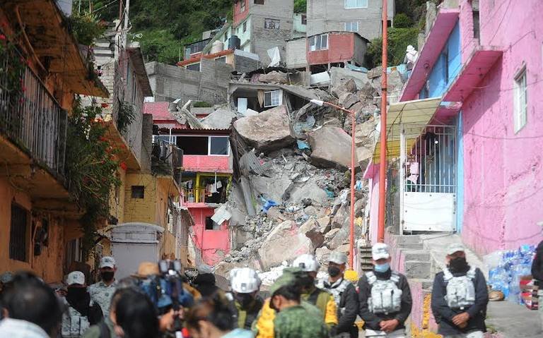 En el lugar del desgajamiento del cerro están trabajando especialistas, y la intención es que puedan detonarse rocas que pesan hasta 80 toneladas, por lo que siguen representando un riesgo constante para la población.