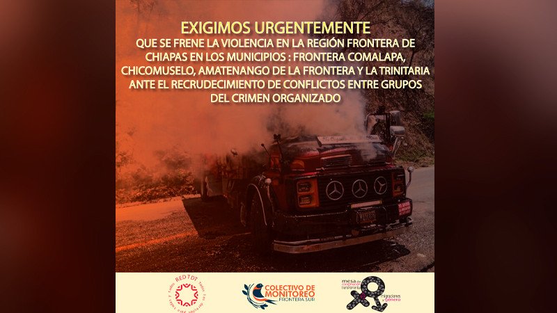 Las organizaciones no gubernamentales (ONG), pidieron protección especial para los municipios de Frontera Comalapa, Chicomuselo, Amatenango de la Frontera y La Trinitaria, por el aumento en la violencia generada por enfrentamientos entre grupos que forman parte de cárteles del crimen organizado en la frontera con Guatemala.